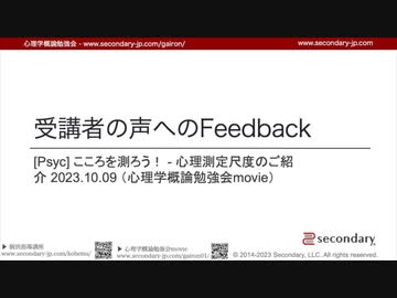 [Psyc] 受講者の声へのFeedback | こころを測ろう! - 心理測定尺度のご紹介 2023.10.09 (心理学概論勉強会movie)