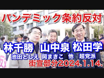 パンデミック条約反対 街宣部分 2024.1.14. 超党派の街宣・デモです