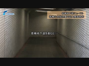 若楠地下道リニューアル、若楠小全校児童で巨大壁画制作(2024年2月16日)