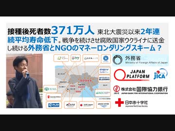 接種後死者数371万人 東北大震災以来2年連続平均寿命低下。戦争を続けさせ腐敗国家ウクライナに送金し続ける外務省とNGOによる税金搾取・海外送金マネーロンダリング・スキーム? 訂正は説明欄参照願う