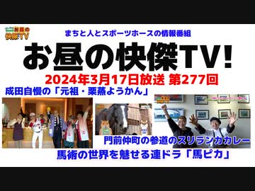 お昼の快傑TV277回3月17日放送2024年 成田山表参道の元祖の栗蒸しようかん/門前仲町のスリランカ カレー/馬ピカ第81話