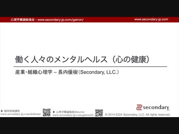 【ライブ収録】働く人々のメンタルヘルス - 心の健康(心理学概論勉強会movie)