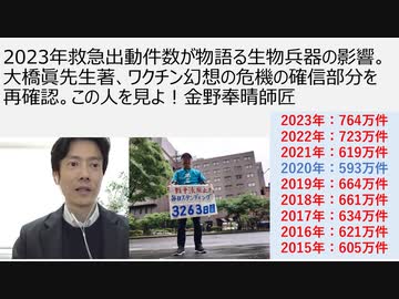 2023年救急出動件数が物語る生物兵器の影響。大橋眞先生著、ワクチン幻想の危機の確信部分を再確認。この人を見よ!金野奉晴師匠