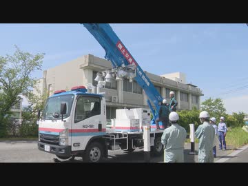 梅雨入り前に災害対策機器の操作訓練 夜間の災害復旧に活用する照明車や災害本部車を確認