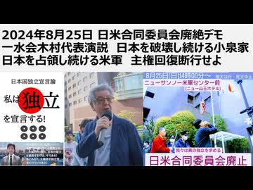 2024年8月25日 日米合同委員会廃絶デモ 一水会木村代表演説 日本を破壊し続ける小泉家 日本を占領し続ける米軍 主権回復断行せよ