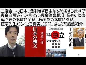 三権合一の日本。裁判せず民主制を破壊する裁判所 裏金自民党を逮捕しない裏金警察組織 警察、検察、裁判官の本質的問題は民主制の本質的課題植草先生知られざる真実、ISF仙波さん茶話会紹介