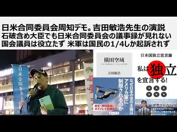 日米合同委員会周知デモ。吉田敏浩先生の演説 石破含め大臣でも日米合同委員会の議事録が見れない 国会議員は役立たず 米軍は国民の1/4しか起訴されず