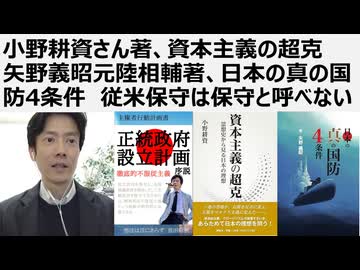 小野耕資さん著、資本主義の超克 矢野義昭元陸相輔著、日本の真の国防4条件 従米保守は保守と呼べない