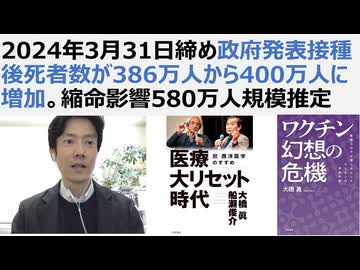 【脱医療洗脳】2024年3月31日締め政府発表接種後死者数が386万人から400万人に増加。縮命影響580万人規模推定