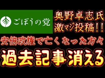20251030_2025年10月30日 『安倍政権で亡くなった方々』【ごぼうの党党首、奥野卓志氏がXとnoteを更新】 #ごぼうの党 #緊急 #日本