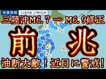 20251109_【これは前兆なのか?!】2025年11月9日、岩手三陸沖M6.7からM6.9へ修正!近日、大地震に要警戒!