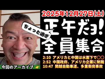 20251227_正午(ちょっと過ぎ)だョ!全員集合[20251227]《アメリカと中国は水面下で○○・中国政府、アメリカ企業に制裁・関越自動車道、多重衝突事故》