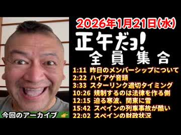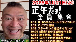 20260121_正午だョ!全員集合[20260121]《昨日のメンバーシップ・ハイアゲ音頭・スターリンクのタイミング・規制するのは・迫る寒波関東・スペイン列車事故・スペインの財政》