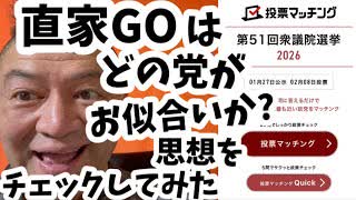 202601269_直家GO は、どの政党がお似合いなのか?思想をチェックしてみた。#衆議院選挙 #2026 #選挙ドットコム