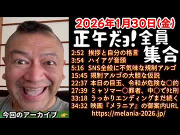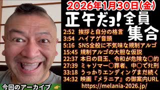20260130_正午だョ!全員集合[20260130]《挨拶と格言・ハイアゲ・SNS規制アルゴ・大胆な仮説・令和が危険・ミャンマーで〇〇・うっかりエンディング・映画メラニアのご案内》